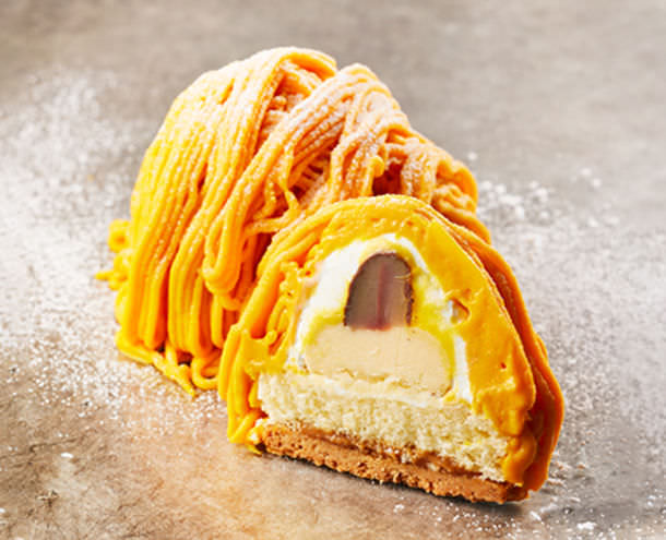 大人気の季節のプレミアムモンブランシリーズからこの秋にお届けするのは、“いも・くり・かぼちゃ”をふんだんに盛り込んだ欲張りモンブラン。鳴門金時のスイートポテトと栗の渋皮煮を丸ごと1粒に、かぼちゃ本来の優しい甘みを最大限に引き出した北海道産有機かぼちゃのクリームをふんわり絞りました。