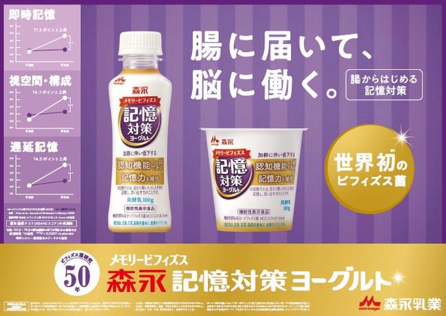 新商品「メモリービフィズス 記憶対策」シリーズは、森永乳業独自の「ビフィズス菌MCC1274」を関与成分とし、“加齢に伴い低下する認知機能の一部である記憶力※2を維持する機能性表示食品”です。「メモリービフィズス 記憶対策」 シリーズでは、食や運動などの生活習慣を介して“早期に記憶ケアを行う大切さ”の啓発も進めていきます。