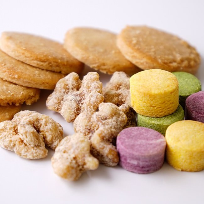 チアシードやキャロブ(イナゴ豆)など、栄養豊富なスーパーフードを使用した大判クッキーのほか、かぼちゃ、紫芋、ほうれん草を練り込んだ野菜ボーロ、栄養たっぷりのクルミを100%ピュアのメープルシロップで結晶化させたメープルウォールナッツなどの小菓子を、可愛いギフトボックスに詰めてお届けします。