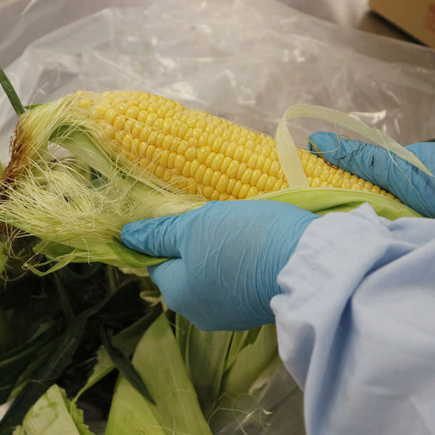 とうもろこしは鮮度が低下しやすく、収穫後1日足らずで1~2%の糖度が落ちてしまうこともあります。そのため、朝採りしたとうもろこしをそのままON THE UMAMIの工場へ直送し、全て手作業で皮を剥き、丁寧に一粒一粒外して加工することで、鮮度・甘さ・風味を損なわない旨みの詰まった炊き込みご飯の素に仕上げました。