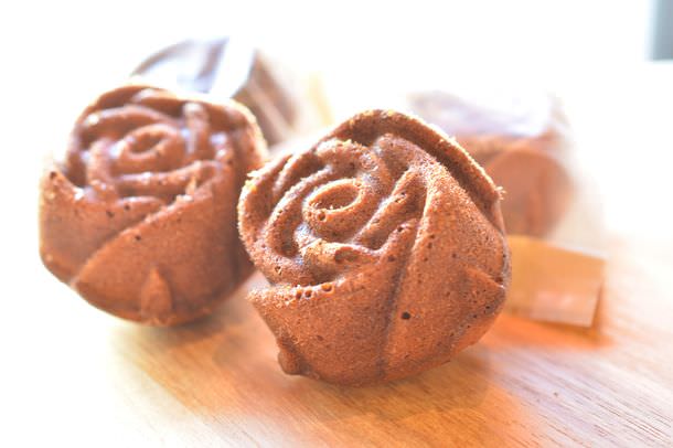 かわいいバラの形をしたフィナンシェです。ドライフルーツ入りで、厚みがある分、しっとりと焼きあがります。ラム酒をかくし味に使い、日を追うごとに熟成する味わい深い逸品です。