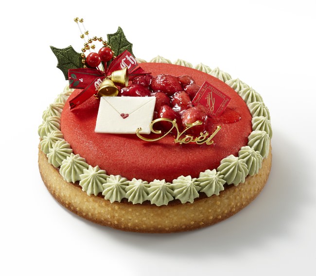 フレーズ・デ・ボワ(森の苺)を使用した人気の苺ムースのタルト。華やかなクランベリージャムとピスタチオクリームに手紙をイメージしたチョコレートを添えました。