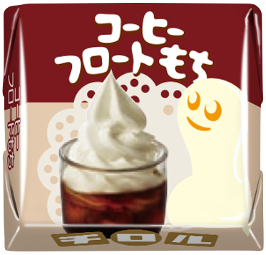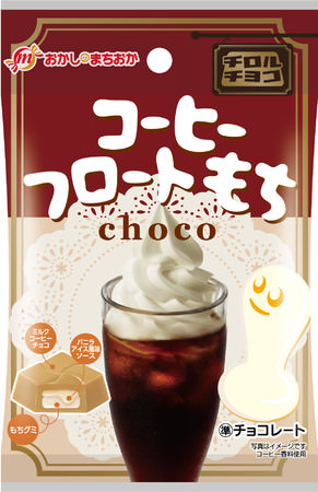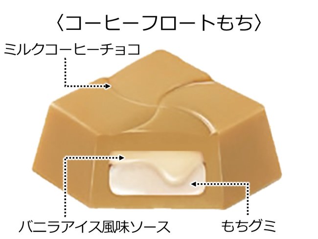 レトロな街の喫茶店のコーヒーフロートをイメージしたチョコ。バニラソース、もちグミをミルクコーヒーチョコで包みました。