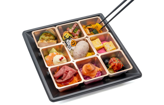 昨年、nonpi foodbox™で大変好評だったハロウィンプランが、パワーアップして今年も登場しました。オンラインのコミュニケーションでも会話を止めずに食べやすいハロウィン仕様の冷製9種アラカルト、定番人気のピンチョス4種や温製カップの濃厚クリームボロネーゼペンネ、自社パティスリー特製ハロウィンカップケーキ、ドリンク3本がついた、オンラインハロウィンパーティーが盛り上がること間違いなしの期間限定プランです。