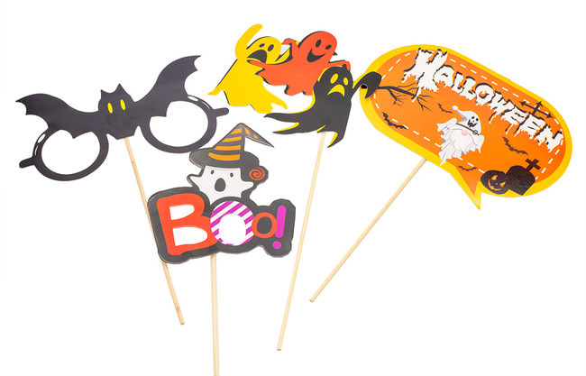 ジャックオランタンやおばけ、その他仮装にピッタリの遊び心のあるハロウィンモチーフの全85種のフォトプロップスをご用意しました。、1種がランダムで同梱されています。