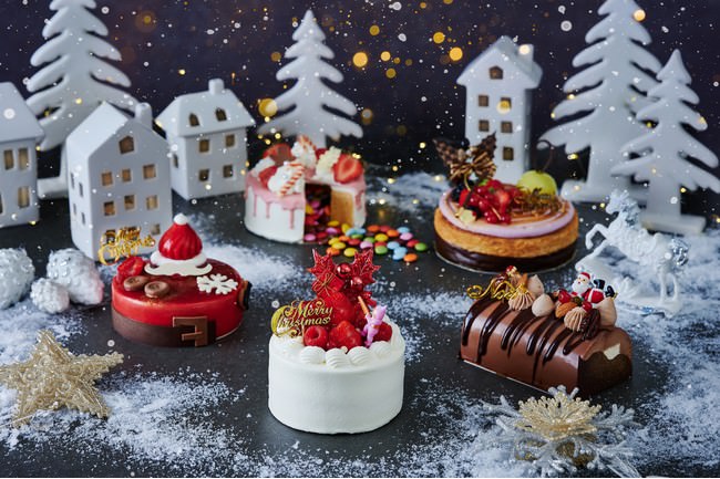 定番のストロベリーショートケーキや、ブッシュドノエルに加え、サンタクロースをモチーフにした真っ赤なムース、ケーキの中からカラフルなチョコレートがあふれ出すサプライズケーキ、ベルギーの伝統的なクリスマスケーキをアレンジしたメレンゲパイなど、個性豊かな5種類のクリスマスケーキがラインナップいたします。