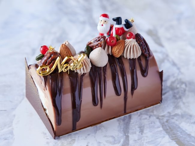滑らかなくちどけのチョコレートムースと、キリッとした柚子のフレーバー、香ばしいナッツのバランスが絶妙なブッシュドノエル。