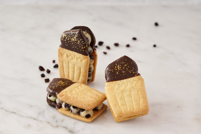 たっぷりの生バタークリームをカップケーキ型のさっくりビスケットでサンドした生バターレーズンサンド。紅茶漬けにしたレーズンがポイント!フェアリーケーキフェア一番人気の商品です。