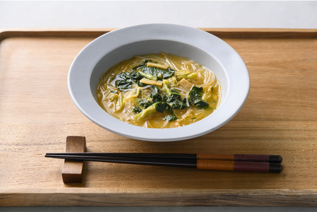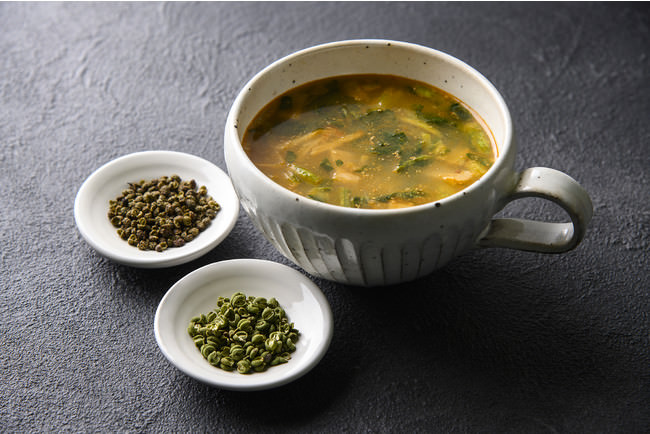 小松菜、たけのこ、ねぎ、ごまの4種の具材で、食感豊かに仕上げました。フリーズドライ製法だからこそ味わえる野菜の食感や旨み・おいしさが特徴です。