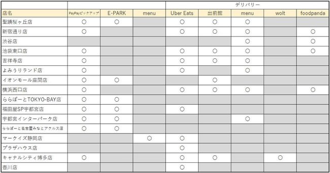 ※「オンライン注文」「デリバリー」は下記の 1 6 店舗で実施しています。