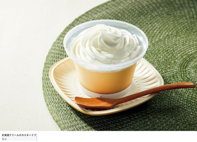 昔ながらの固めのカスタードプリンの上に北海道産クリームを配合したミルキーなホイップクリームをソフトクリームのようにぐるぐるとたっぷり乗せています。味だけでなく見た目もお楽しみいただける商品です。