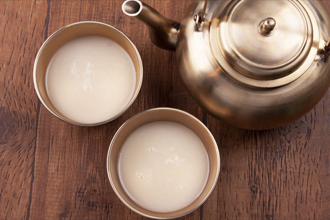 こだわりの「生マッコリ」は、非加熱で飲む直前まで発酵が進み、酵母・酵素がたっぷり。豊富な乳酸菌はお腹に優しく、コクのある味わいと自然発酵の微炭酸も感じられる一杯です。韓国では祭器として古くから使われている、重厚感ある真鍮の酒器で乾杯をどうぞ。