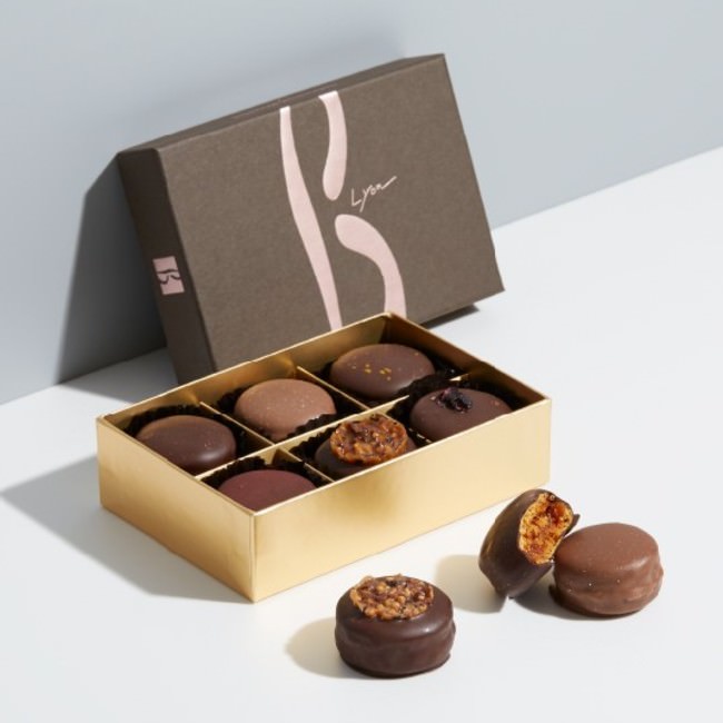 「マカロン+リヨン」から名付けられた遊び心あふれる一品。マカロンをパリッと薄いショコラでコーティングしています。