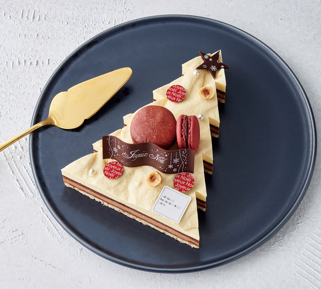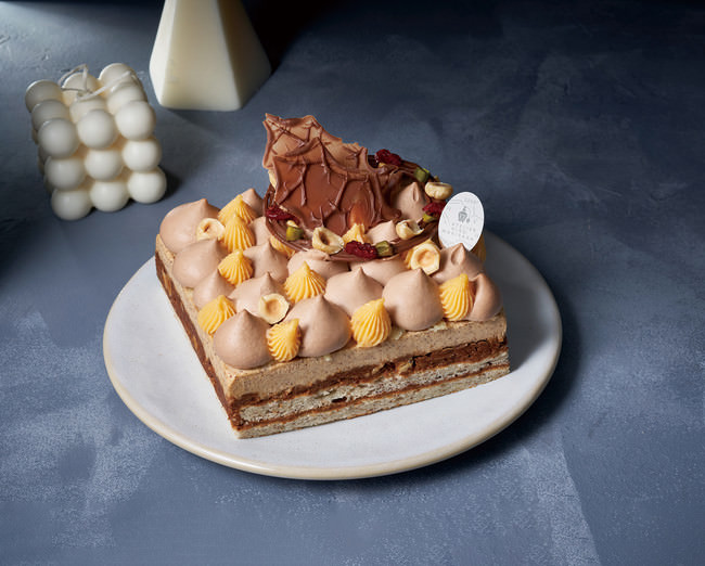 チョコレートムースにマロンムース、しっとり焼き上げたビスキュイを重ねたケーキ。