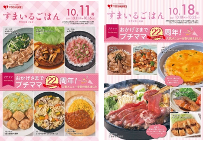 子どもが小さくて買い物に行けない、共働きで時間がない、お料理がチョット苦手…など、新米ママの抱える悩みを解決すべく誕生した「プチママ」は、月~金、月~土と続けてご利用いただく一週間おまかせメニューコースとして、地域限定メニューの形でスタート。専属の管理栄養士が、一週間のバランスを考えたメニューは、毎日続けてご利用いただくことでその良さを最大限に実感できる提案として親しまれ、1999年に全国デビューしました。その後も多くのファンに支えられ、今では日平均販売出荷数は15万食※を超え、ヨシケイの数あるメニューコースの中でも人気No.1となり2021年10月で22周年を迎えました。(※2021年4月1日~2021年6月30日プチママ販売数量の平均 ヨシケイ開発調べ)