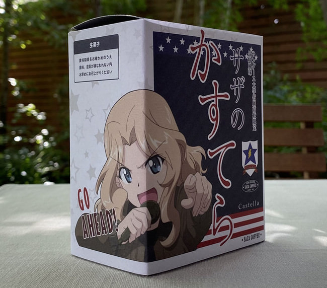 劇中に登場する「サンダース大付属高校」が長崎にあるという事を元に、長崎名物「カステラ」を商品化!「長崎風味」な茨城産のカステラです。カステラには奥久慈卵を使用。奥久慈卵とは、100%天然原料の飼料で育てられた雛を地下100mの自然環帰されたミネラル豊富な水を与え、大自然の中での開放鶏舎による飼育で育てられた鶏の卵で、殻のしっかりとした栄養価の高い卵です。コーヒーとカステラの相性は抜群です!