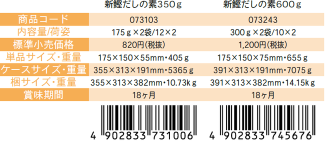 「新鰹だしの素350g」、「新鰹だしの素600g」 キャンペーン専用パッケージ商品
