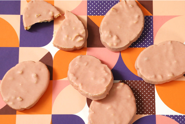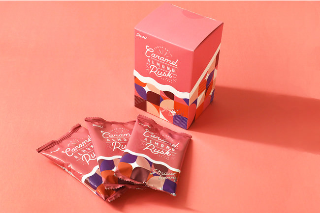 今季の販売に合わせ、パッケージも一新いたしました。ブラウンとピンク、それぞれのフレーバーをイメージし、ミルクチョコやストロベリーチョコを連想させるデザインが目を引くパッケージに仕上げました。そこに、ラスクをお召し上がりいただいたときのサクサクとした食感や音のイメージをのせ、ワクワク心踊るパッケージにデザインいたしました。また、温かみのあるカラーがベースになっているので秋冬シーズンのちょっとしたギフトにもおすすめです。贈る側も贈られる側も楽しく、心温まる手軽な贈り物としてご利用いただけます。
