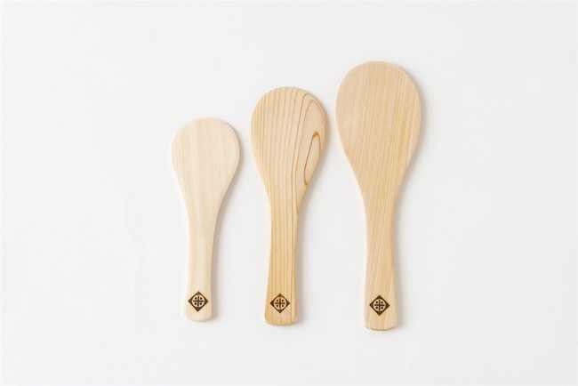 東濃地方と呼ばれる岐阜県南東部の地域は室町時代からのひのきの産地であり、香りの高さと強度の高さ、年を経るごとに光沢が増すといった特長があり、主に建築用材に使用される東濃ひのきの端材を使用してしゃもじを作りました。 捨てられる端材を無駄なく有効活用することで環境負荷を抑え、循環型社会に貢献しています。