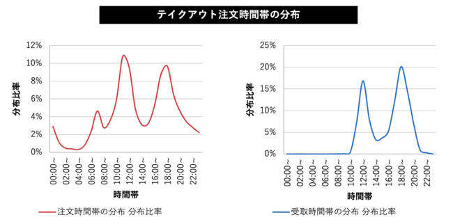 昼夜のピークタイム(12時台・13時台)の1時間ほど前がピークであるのは感覚値に近い数字ではないだろうか。一方でそれらは全体の20%程度に過ぎず、実は分散して注文が行われていることがわかる。