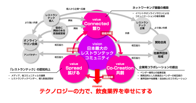 「テクノロジーの創出は、人の繋がりが源泉である」と私達は考え、「人」を繋ぐことで、飲食業界を幸せにしたいと思っています。