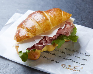 『コルネッティ』は、プレーンの他に、ジャムやカスタードなどのフィリングを挟んだものや、毎年秋のシーズンにお楽しみいただける『コルネッティ マローネ カシス』も登場。栗の味わいを引き立てるために甘酸っぱいカシスを合わせ、発酵バターの味わいにカシスのほどよい酸味を感じた後、マロンクリームの風味が口の中に広がるデザートのような贅沢な味わいが特長です。この他、コルネッティになめらかな食感で、口の中でふわっと溶けるような優しい味わいのもも肉のハム「プロシュート コット」と羊のミルクを原料としたチーズ「ペコリーノ」を挟んだ『コルネッティ サンドイッチ プロシュート コット & ペコリーノ』や、ブリオッシュに20ヶ月熟成させて、やわらかく、肉本来の旨味を感じていただける生ハム「プロシュート クルード」と“イタリアチーズの王様”と呼ばれるほど人気の高い「パルミジャーノ レッジャーノ」、「ルッコラ」を合わせた『ブリオッシュ サンドイッチ プロシュート クルード & パルミジャーノ』など、イタリアパンと厳選されたハムやチーズとのシンプルな組み合わせで素材の良さが引き立つサンドイッチをご用意しました。