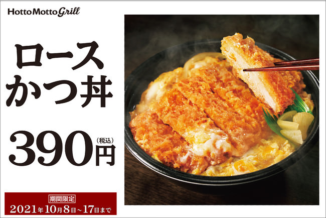 このたび「ほっともっとグリル」では、 店舗で揚げたロースとんかつを玉子でふんわりとじた、人気の『ロースかつ丼』をはじめ、『月見ソースかつBOX』や『月見ねぎ味噌かつ丼』、『ねぎ味噌かつ丼』を特別価格でお買い求めいただけるキャンペーンを、10月8日(金)より17日(日)まで実施いたします。