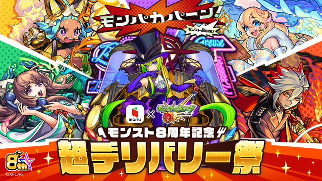 2020年4月にデリバリーサービスの提供を開始したmenuは、日本全国に美味しいお食事を届けたいという想いから、2021年4月に全国展開を達成いたしました。配達エリアを急拡大する中で、全国のお客様にmenuを通じて食のワクワク感をより一層楽しんでいただきたいと考え、10月10日(日)に8周年を迎える「モンスト」とのコラボレーション企画「超・デリバリー祭」キャンペーンを開催いたします。