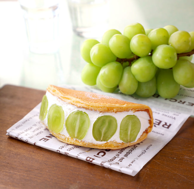 今回新発売となる「信州シャインマスカットのスフレパンケーキ」は、10月~11月に旬を迎える信州産のシャインマスカットを契約農家から産地直送し使用した、クリームたっぷりのパンケーキサンドです。