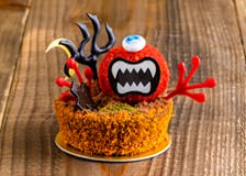 濃厚なキャラメルと柚子を合わせたハロウインタルトに、モンスターチョコレートクランチをトッピング