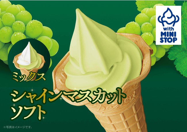北海道産の新鮮な生乳と生クリームを使用した「ソフトクリーム バニラ」と、長野県および岡山県産の「シャインマスカット」の果汁を使用した、ミニストップ史上初のフレーバー「シャインマスカットソフト」「シャインマスカットミックスソフト」を数量限定でお届けします。