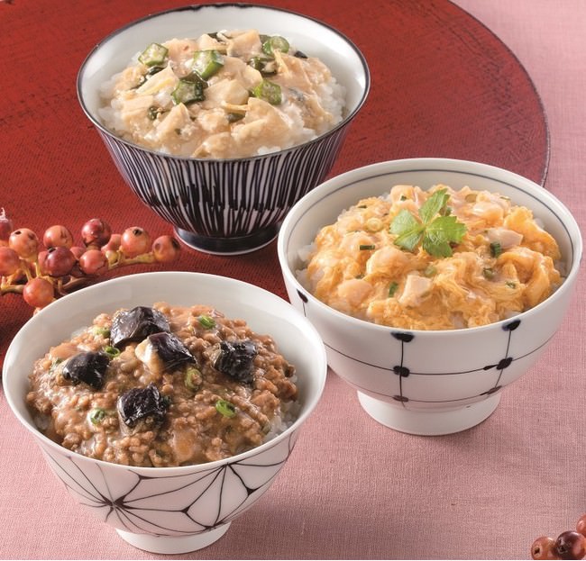 さまざまな食シーンに合わせて、ごはんが華やぐ3種のどんぶりをお召し上がりください。