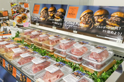 期間中は、全国の取扱スーパー各店にてプルドポークの調理に適したブロック肉(肩ロース、ウデ肉等)に、代官山ハイライフポークテーブル篠嵜シェフ特製のバーベキューソースを添付。ハイライフポークを使ったホロホロの食感とたっぷりジューシーな肉汁のプルドポークがバーベキューソースと良く絡まり、噛むたびに旨みが染み渡ります。サンドイッチやバーガーの具、さらには丼やパスタとしてなど、多彩なアレンジもできてパーティメニューにも最適なプルドポークをこの機会にぜひお試しください。