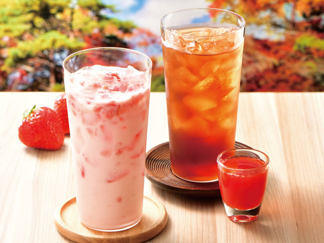 ■「知覧(ちらん)のアイス紅茶〜あまおう苺ソース添え〜」(右)¥440〜