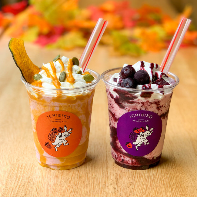 「ハロウィンスムージー」をはじめ、「いちびこミルク」など冷たいドリンクメニューは、イタズラ心いっぱいのうさぎおばけの限定デザインで登場します。