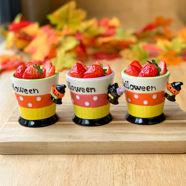 濃厚とろけるかぼちゃプリンに、生クリーム、自家製いちごジャム、フレッシュいちごをたっぷりトッピング。コクのあるかぼちゃと甘酸っぱいいちごの味わいが楽しめます。ハロウィン陶器カップ入りの数量限定となります。