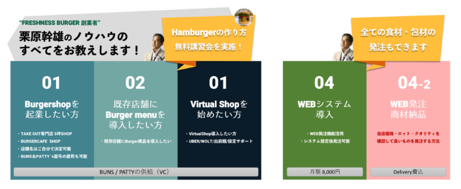 飲食業界のレジェンドとも呼ばれるフレッシュネスバーガーの創業者・栗原幹雄がプロデュースするオリジナルパティやバンズ、その他Burger Shop向け食材・包材の共同仕入れをするボランタリーチェーンシステムです。