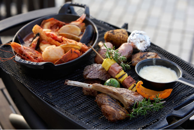 秋バーベキューは、心地良い海風にあたりながらグリルの火も適度に快適、この季節ならではの「楽しさ」がたくさんあります。メニューにはお肉のほか、ブイヤベースのホットポットメニュー、バゲットや野菜をつけていただくチーズフォンデュなどホッとする温かいお料理をご用意しております。夏のバーベキューも良いですが、秋バーベキューではゆっくりと腰を落ち着け、東京のアイコニックな景色とともにワンランク上のバーベキューをお楽しみください。屋外ヒーターもご用意していますので少し肌寒い日も安心してお過ごしいただけます。