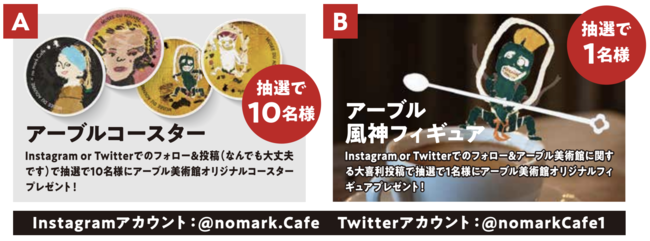 Instagramor Twitterでのアカウントフォロー&投稿で、アーブル美術館コラボアイテムをプレゼントします