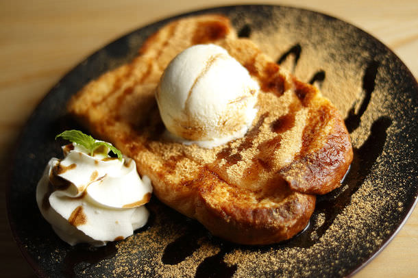 老舗和菓子店「金精軒」が、地元山梨県北杜市のブランド米「梨北米」と白州の名水でつくった極上餅菓子「生信玄餅」を贅沢にトッピング。ふわふわのフレンチトーストと生信玄餅ならではのモチモチ食感がお楽しみいただけます。