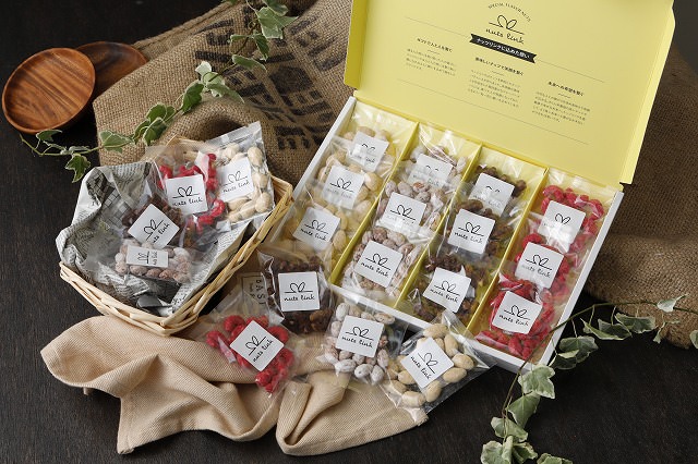 「nuts link」のナッツはただのナッツではありません。あなたが想う、「おいしい」を届けたい人とずっと繋がることができるように。そしてさらに大きな繋がりが継続的に広がっていくようにと願いが込められたナッツなのです。