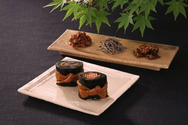 代表作である「あい昆布巻」は、北海道産天然一等昆布を使用し、その上質な味わいと肉厚の食感など昆布本来の風味を十分楽しむことができる逸品です。