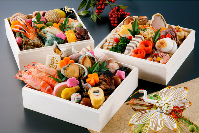 今年も、加賀の美味しさを詰め合わせた和のお重に、洋風と中華を加えたバラエティ豊かな三段重に仕立てました。幅広い世代の方に美味しく味わっていただける色とりどりのお祝いおせちとして、新年を寿ぐお席に最適なご馳走に仕上げています。