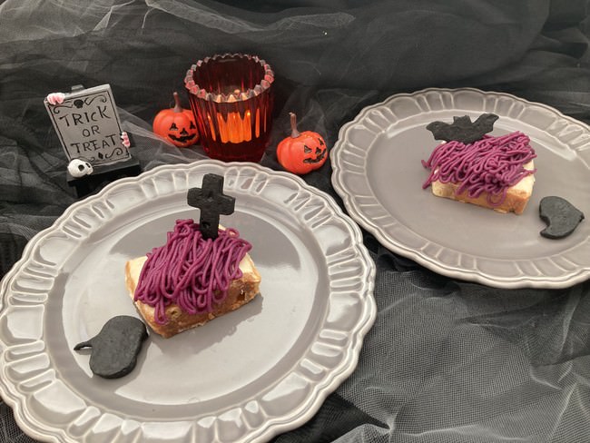 秋の終わりの夕暮れ時、どこからともなく現れるお化けや魔女。少し不気味でキュートなハロウィンの世界観を詰め込んだ、楽しいハロウィンデコレーションセットが登場。竹炭を練り込んだ真っ黒なコウモリや十字架のビスケットと、紫芋のクリームでデコレーションを楽しんで下さい。