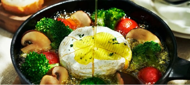 カマンベールチーズを丸ごと使った彩り鮮やかなアヒージョです。ワインやお酒のおつまみにもおすすめです。