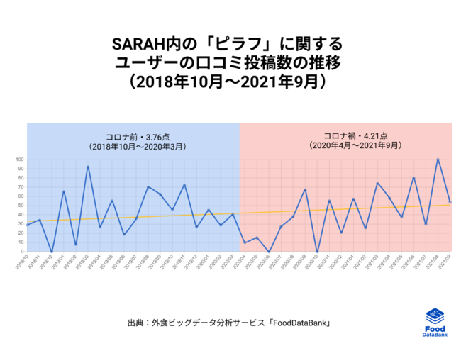 ・コロナ禍での投稿数が増加! 評価点も上昇する「ピラフ」