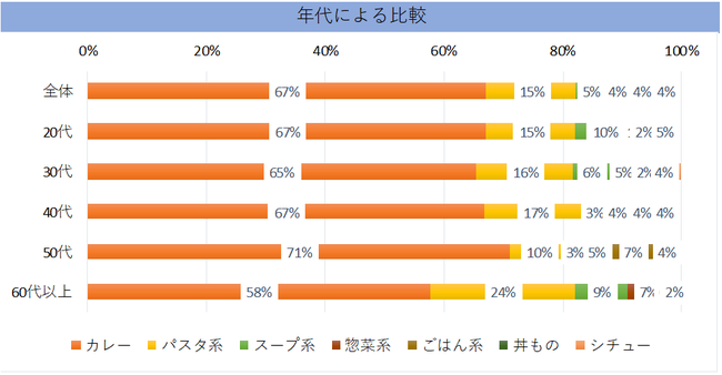 本調査ではこれ以外に、レトルト食品を購入する一番の魅力や一度に購入するストック量など、全24問で回答を得て、年代別、性別、職業別、既婚・未婚別に集計しています。