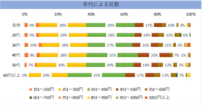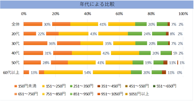 価格に関しては、100~150円の商品もある中で151~250円の価格帯を購入される方が最も多く、28%の人が250円を越えると高いと感じる傾向にあります。