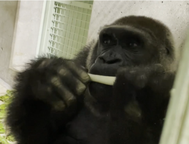 動画はコチラ「ゴリラ大和学園からの寄附のネギ食べる」
