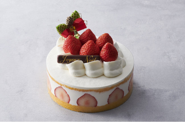 口どけなめらかなクリームとスポンジに苺をサンドした、クリスマス限定デザインのデコレーションケーキです。